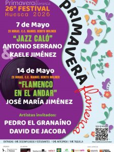 Antonio Serrano, y Kaele Jiménez estarán en concierto con su obra JAZZ CALÓ en el 26º Festival PRIMAVERA FLAMENCA de Huesca. El concierto tendrá lugar el jueves 7 de mayo, a las 20:00h. Y El precio de la entrada es desde 12€.