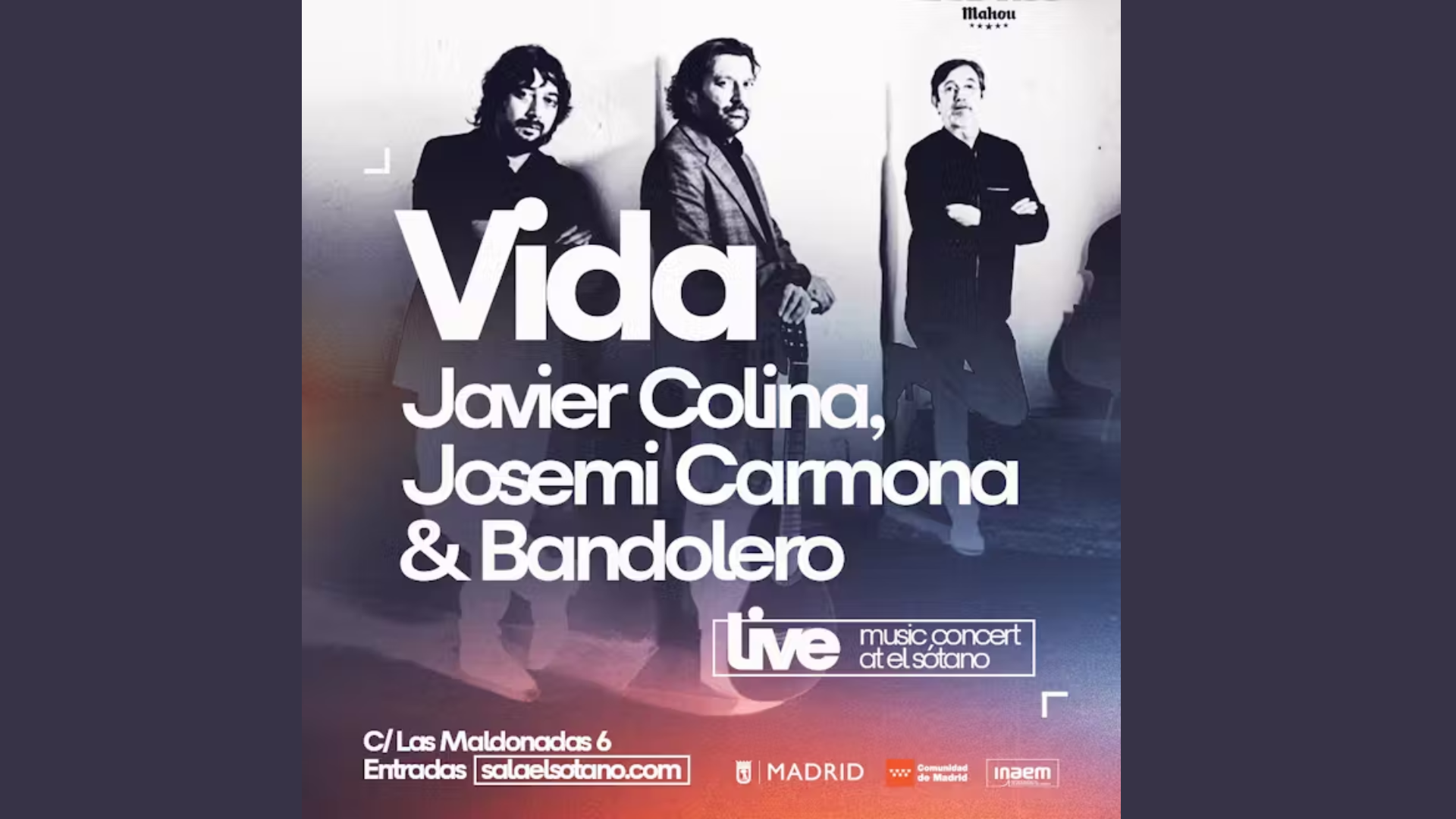 Josemi Carmona & Javier Colina con Bandolero presentan "VIDA" en EL SÓTANO (Madrid), el próximo miércoles 19 de noviembre, a las 21:00h. Precio de entrada es desde 18€. COMPRAS ENTRADAS