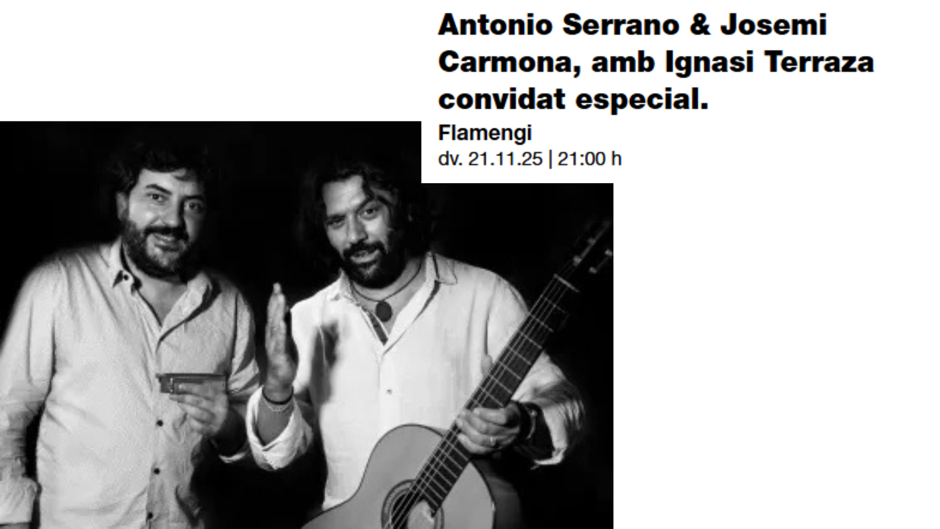 Antonio Serrano, y Josemi Carmona estarán en concierto con Ignasi Terraza en FlamenGI, Festival Flamenco de Girona que se celebrará del 14 al 29 de noviembre. El concierto tendrá lugar el próximo viernes 21 de noviembre, a las 21:30h en el TEATRO MUNDIAL LA BISBAL de´Empordá (Girona).El precio de la entrada es de 24€.   […]