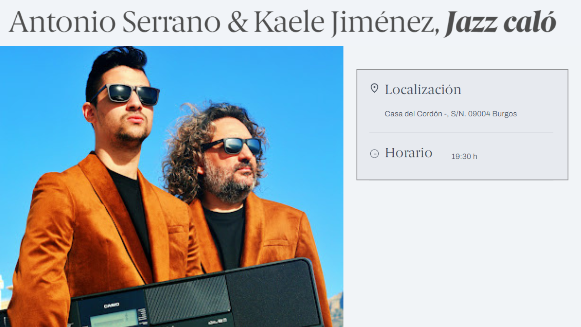 Antonio Serrano, y Kaele Jiménez estarán en concierto en el marco del FESTIVAL INTERNACIONAL DE JAZZ que se celebrará en la ciudad de Burgos, con su disco Jazz Caló, un proyecto que reinterpreta la tradición flamenca desde la libertad creativa del jazz. El concierto tendrá lugar el próximo viernes 6 de febrero, a las 19:30h, en […]